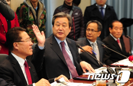 김무성 새누리당 대표가 연말정산 논란에 대해 최경환 경제부총리의 실수를 지적했다. /사진=뉴스1