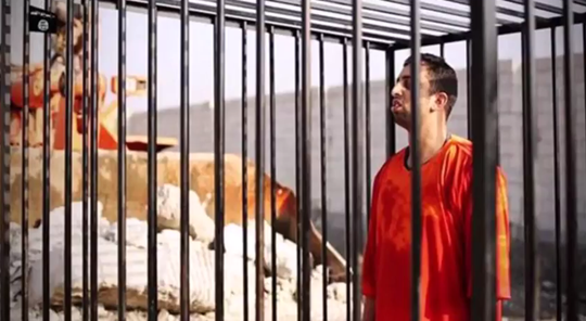 영상에는 IS 무장대원들이 야외에 설치된 철장을 둘러싸고 있는 모습이 담겨 있다. 철장 안에는 알카사스베 중위로 보이는 오렌지색 죄수복을 입은 남성이 갇혀 있다.