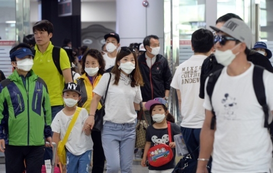 부가 메르스 사태 조기 종식을 위한 대책을 발표한 7일 오전 메르스 감염을 예방하기 위해 마스크를 쓴 관광객들이 제주공항을 통해 입도하고 있다. /사진=뉴스1