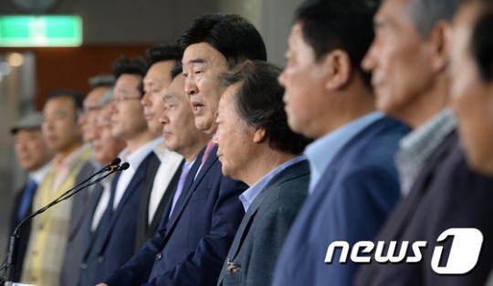 새정치민주연합 중앙당 당직자 출신들로 구성된 '국민희망시대' 소속 당원들이 9일 서울 여의도 국회 정론관에서 탈당 기자회견을 하고 있다. /사진=뉴스1