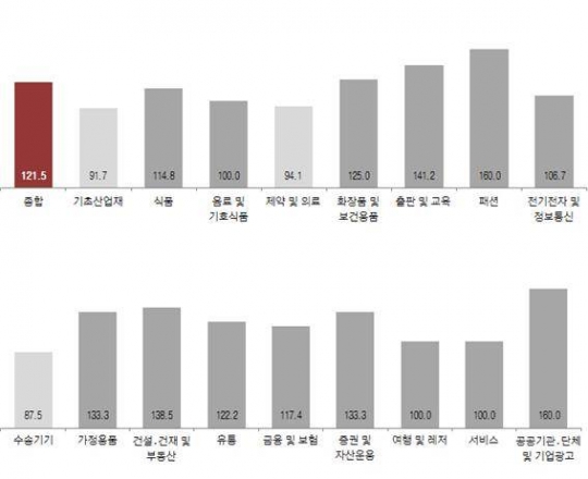 업종별로는 계절적 요인을 반영하여 패션 특히 아웃도어 제품의 광고가 대폭 증가할 것으로 예상되며 추석 명절과 연휴로 인해 백화점, 대형 마트와 여행. 레저. 영화. 공연 등의 특수가 기대된다. 이밖에 중국게임 업체들의 국내시장 공략과 이에 맞서는 국내 게임업체들의 시장방어를 위한 광고가 늘어 날 전망이다. 특히 공공기관 및 단체와 대기업의 이미지 광고가 가장 큰 폭으로 증가할 것으로 보인다. 이는 경기 극복과 청년 일자리 창출이라는 사회적 분위기를 반영하여 공공부문의 예산 집행을 늘이고 대기업들이 이에 호응하기 때문인 것으로 분석된다.