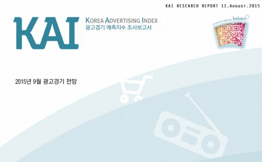 한국방송광고진흥공사는 12일 국내 광고시장의 경기변동을 파악하기 위해 매월 조사하고 있는 광고경기 예측지수(KAI ; Korea Advertising Index)를 발표했다. 조사된 결과에 따르면 9월 종합 KAI는 121.5로 나타나, 전월대비 뚜렷한 증가세를 보일 것으로 기대된다.