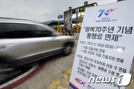 한편 정부는 14일을 광복 70주년을 기념해 임시공휴일로 지정했다. 또 14일 0시부터 24시까지 고속도로 통행료를 받지 않기로 결정했다.