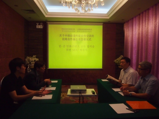 국내 유일의 만화진흥기관인 한국만화영상진흥원이 20일 북경에서 중국의 인터넷 방송 콘텐츠를 관리 감독하는 국가신문출판광전총국(광전총국) 산하 공기업인 중국신문출판미디어그룹유한공사(CMG)와 전략 합작에 관한 업무 협약(MOU)을 체결했다.