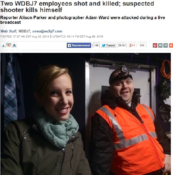 CBS 계열의 미국 지역방송국 WBDJ는 지난 26일(이하 한국시간), 소속기자 2명이 버지니아주 남서부에서 생방송 인터뷰 도중 갑작스런 총격을 받아 숨졌다고 전했다.