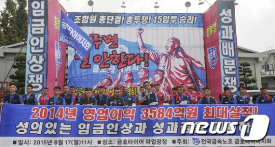 지난 8월 17일부터 전면파업에 들어간 금호타이어 노동조합. /사진=뉴스1