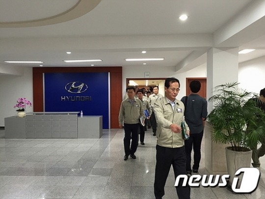 현대자동차 노사가 22일 추석 전 타결을 위한 마지막 기회인 29차 교섭을 가졌지만 합의도출에 실패한 가운데 사측 윤갑한 사장과 교섭위원들이 씁쓸한 표정으로 회의장을 걸어나오고 있다. /사진=뉴스1