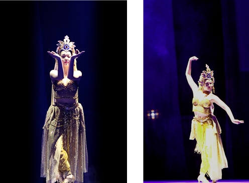 조명을 뒤에서 비추어 후광처럼 처리하는 무대연출로 보살춤에 환상적인 효과를 더해주었고, 역광을 통한 신체의 실루엣으로 그 신비로움을 극대화시켰다.