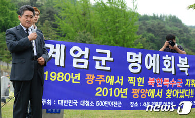 지만원씨는 5·18 당시 광주 시민들과 시민군의 사진을 북한군 핵심 간부들의 얼굴 사진과 비교하며 '5·18 때 광주에 내려온 북한특수군'이라고 주장했다. 얼굴이 비슷하다는 이유로 현재까지 '광수'로 지목된 시민군들은 이날 현재 모두 200여 명에 달한다.