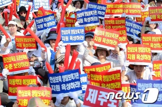 연합회가 요구한 내용에는 내년 누리과정 보육료 1인당 30만 원 지원 약속을 이행하라는 것 외에 종일반 보육을 8시간제로 전환할 것, 보육교사 근무여건·처우 개선, 영아반보육료 10% 인상 등이 들어있다.