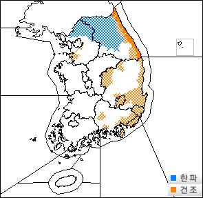 기상청은 8일 16시 10분 강원도(삼척시평지, 동해시평지, 강릉시평지, 양양군평지, 고성군평지, 속초시평지)에 건조 경보를 내렸다.
