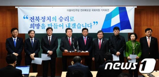 뉴스1 보도에 따르면 더불어민주당 소속 전북지역 국회의원 9명은 18일 오전 전북도의회에서 공동기자회견 통해 "선거를 위한 분열은 민심이 아니다"면서 "외풍에 흔들리지 않고 당을 지키겠다"고 밝혔다.