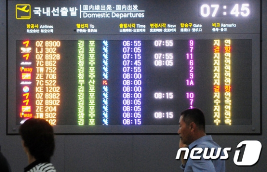 또 출발편으로는 처음으로 이날 오전 7시 55분 경 김포행 아시아나항공 8900편이 제주공항을 이륙해 서울로 출발했다. 이어 출발편 30여 편의 항공기가 탑승 수속을 밟고 있다.