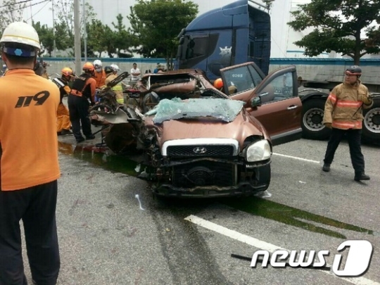 부산 남구 감만동에서 SUV차량 산타페가 주차돼 있던 트레일러를 들이받아 차량에 탑승 중이던 일가족 5명 중 4명이 사망하는 사고가 발생했다.