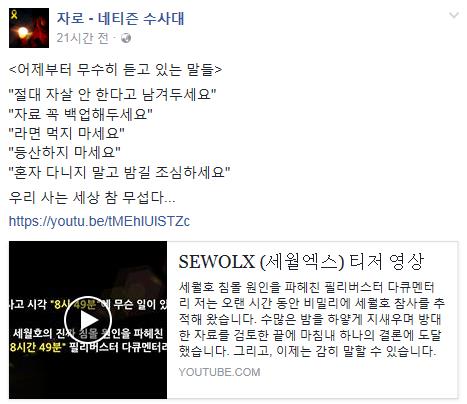 '자로-네티즌 수사대'(이하 자로)가 세월호 다큐멘터리 '세월엑스(SEWOLX)' 공개를 앞두고 심경을 밝혔다.