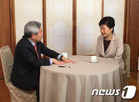 박근혜 대통령이 25일 청와대 상춘재에서 '정규재tv' 운영자인 정규재 한국경제신문 주필과 단독 인터뷰를 하고 있다.(정규재tv 제공 )/사진= 뉴스1