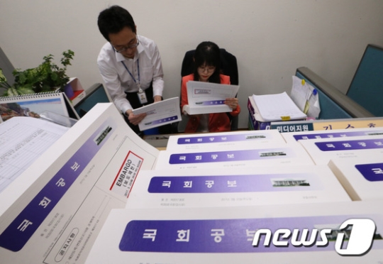 국회 사무처 직원들이 지난 22일 서울 여의도 국회에서 국회의원 2017년도 정기 재산변동사항 공개내역을 살펴보고 있다. /사진=뉴스1