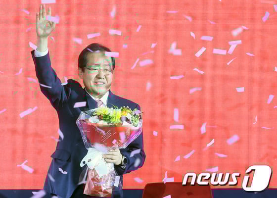 홍 후보는 선거인단 투표에서 61%, 여론조사 47%를 얻어 합계 54%를 얻어 압승을 거뒀다. 자유한국당은 지난 26일 책임당원을 대상으로 실시한 전국 동시투표, 29~30일 진행한 일반 국민을 대상으로 한 여론조사를 각각 50%씩 반영했다.