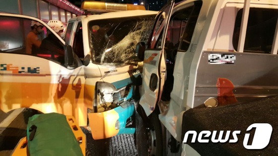 해당 사고로 포터 운전자 최모씨(46)와 동승자 2명이 부상을 당했다. 봉고 운전자 최모씨(38)도 부상을 입었다.
