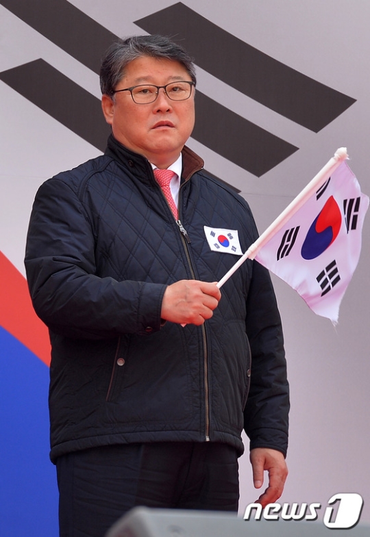 조원진 자유한국당 의원(대구 달서구병)이 8일 열린 태극기집회에서 자유한국당 탈당을 선언했다. 이날 조원진 의원은 탄핵 주도세력과 전쟁을 선포한다고 말했다.