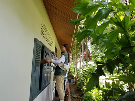 초등학교 교육봉사가 마무리된 후에 노력봉사를 위해 다시 초등학교를 찾았다. 초등학교 페인트칠을 위해 다시 눈싸왓 초등학교를 찾은 단원들은 아이들의 사랑을 떠올리며 누가 먼저랄 것 없이 붓을 집어 들었다. 모두가 처음 해보는 페인트칠이었지만 즐겁게 임했다. 햇빛이 쨍쨍 내리쬐는 날씨에 온몸에 페인트가 튀고, 다들 짜증날 법 했지만 아이들의 웃는 모습을 떠올리며 각자 맡은 일을 열심히 했다. 깨끗이 재단장한 초등학교의 모습을 보며 우리가 받은 사랑의 조그만 부분이라도 아이들에게 전달되기를 소망했다.