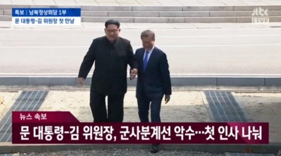 문재인 대통령이 김정은 국무위원장의 권유로 판문점 북측 지역에 월경하는 등 역사적인 남북정상회담이 화기애애한 분위기에서 진행 중이다.