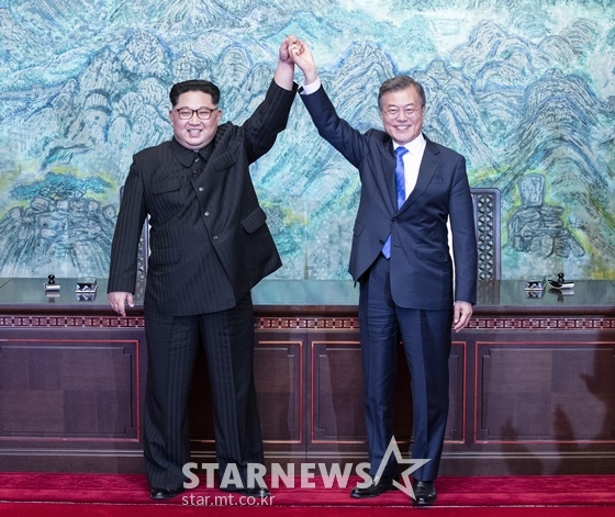문재인 대통령과 김정은 북한 국무위원장은 27일 판문점 남측지역 평화의집에서 열린 남북정상회담 후 '한반도의 평화와 번영, 통일을 위한 판문점 선언'을 공동으로 발표했다.