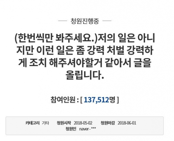 지난 2일 청와대 국민청원 게시판에 '저의 일은 아니지만 이런 일은 좀 강력 처벌 강력하게 조치 해주셔야 할 거 같아서 글을 올린다'는 제목으로 '광주 집단 폭행 사건'에 대한 강력한 처벌을 요구하는 글이 올라왔다. 3일 오후 4시 기준 해당 청원글에 참여한 인원은 13만 7천 명을 넘어섰다.