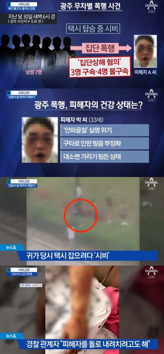 뉴스1에 따르면 광주 광산경찰서는 지난달 30일 오전 '택시 새치기' 문제로 시비를 벌이다 집단폭행한 혐의(공동상해 등)로 A씨(31) 등 3명을 구속하고, B(31)씨 등 4명을 불구속 입건했다.