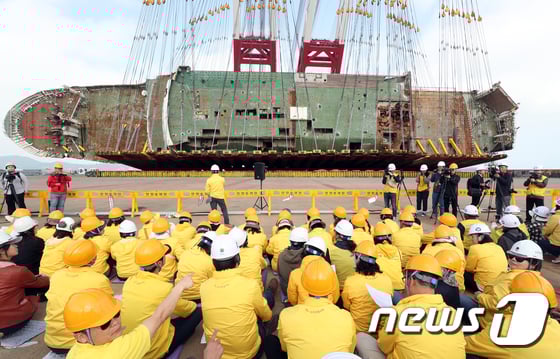 뉴스1에 따르면 세월호 선체조사위원회는 10일 오전 목포신항에서 해상크레인으로 선체를 바로 세우는 작업을 시작한다. 이날 오전 9시부터 3시간 가량 진행될 예정이다. 이 과정은 세월호 유가족 및 선체조사위원회 관계자 등 100여명 정도가 지켜보는 가운데 진행된다.