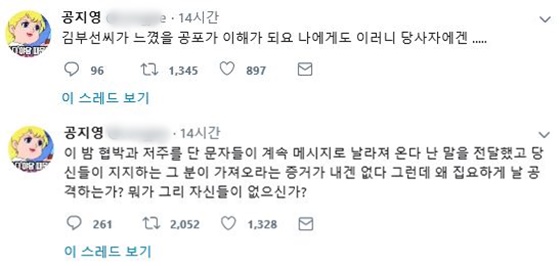 또 공지영 작가는 바로 이어서 "김부선씨가 느꼈을 공포가 이해가 된다. 나에게도 이러니 당사자에겐"이라는 글을 올리기도 했다.