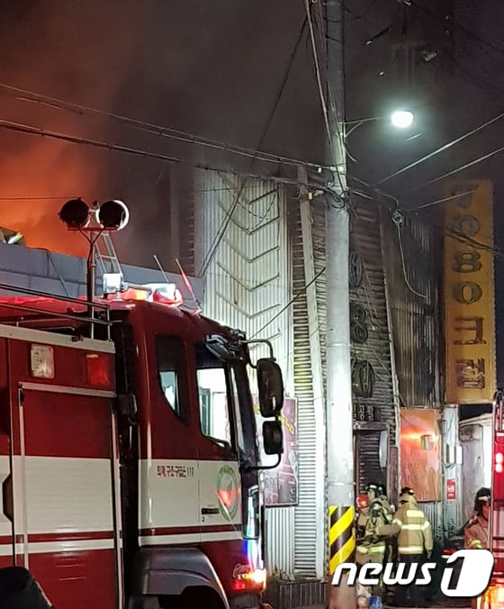 '군산 화재' 17일 오후 9시53분께 전북 군산시 장미동 한 클럽에서 화재가 발생했다. 이날 소방관들이 화재현장을 조사하고 있다. /사진=뉴스1