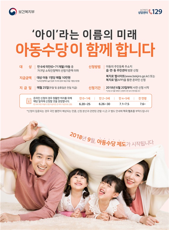 '복지로' 통해 아동수당 사전신청 시작..대상자 조건은?