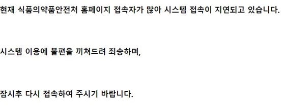 식약처 홈페이지가 이용자 폭주로 인해 접속이 지연되고 있다.