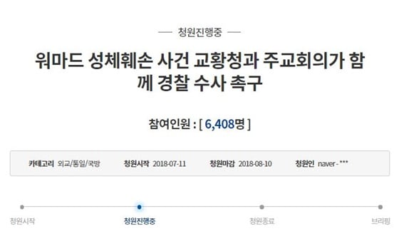 성체 훼손 등 워마드의 종교 모독 게시물이 잇따르면서 청와대 국민청원 게시판에는 해당 커뮤니티를 폐쇄하거나 수사해야한다는 요청이 다수 등장했다.