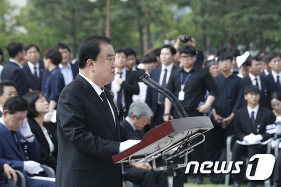 이어 문희상 의장은 "태양빛 가득한 계절이건만 우리 모두는 어두운 터널에 들어선 듯 참담한 심정으로 모여있다"며 "실감이 나지 않는다. 믿고 싶지 않다. 지금 이 순간이 현실이라는 것에 황망함과 비통함을 금할 수 없다"고 안타까운 심정을 전했다.