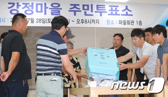 뉴스1에 따르면 서귀포시 강정마을회는 지난 28일 오전 6시부터 오후 8시까지 '대통령의 유감 표명과 공동체 회복 사업의 원활한 추진을 위한 국제관함식 동의 여부'에 대한 찬반투표를 실시했다. 투표 결과에 따르면 투표자 449명 중 385명이 찬성표를 던졌다. 반대표를 던진 주민은 62명, 기권표를 던진 주민은 2명으로 집계됐다.