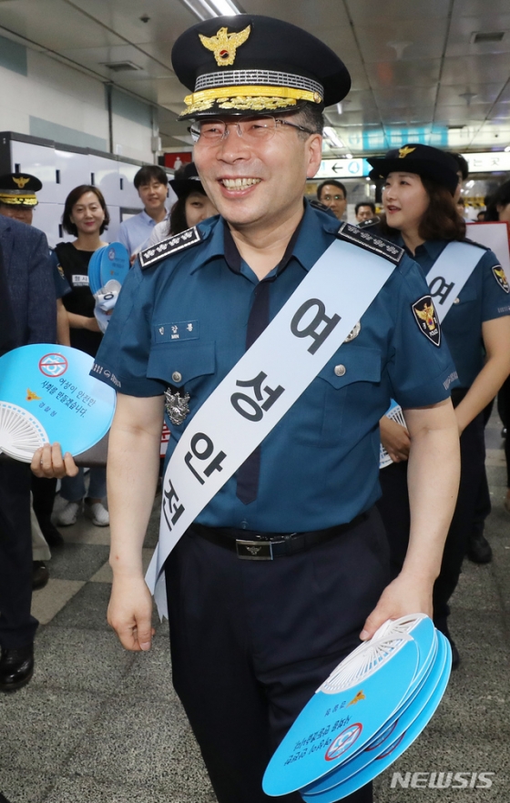 민갑룡 경찰청장이 4일 종로구 광화문 광장에서 열린 '제4차 불법촬영편파수사 규탄시위' 현장을 방문했다.