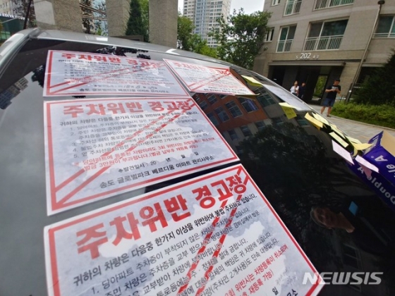 한편 지난 27일 오후 5시께 이 아파트 정문 지하주차장 통로 입고에 주차된 차를 견인해달라는 주민 신고가 경찰에 접수됐다. 하지만 경찰은 이 아파트 내 도로가 일반도로가 아닌 사유지에 해당돼 A씨의 차량을 견인 조치하지 못했다.