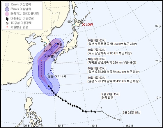 태풍 콩레이, 日→서귀포 북상 중..제주·경북 등 비 소식