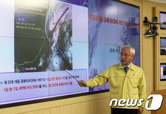기상청에 따르면 콩레이는 5일 오전 3시 기준으로 일본 오키나와 서북서쪽 약 170km 부근 해상에서 시속 26km로 북북서진 중이다. 중심기압 975hPa(헥토파스칼), 최대 풍속 115m의 중형 태풍이다.
