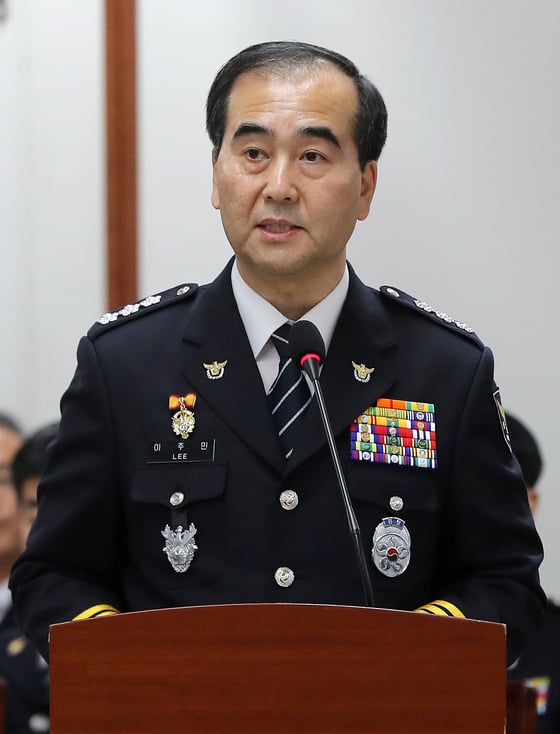 이주민 서울지방경찰청장이 18일 오후 서울 종로구 서울지방경찰청에서 열린 국회 행정안전위원회의 서울지방경찰청에 대한 국정감사에서 인사말을 하고 있다. /사진=뉴스1