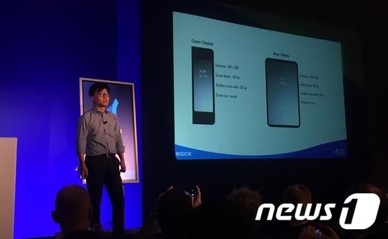 뉴스1에 따르면 저스틴 데니슨 삼성전자 미국법인 상무는 이날 오전 샌프란시스코 모스콘센터에서 열린 'SDC 2018'에서 기조연설을 하던 도중 주머니에서 폴더블 스마트폰을 꺼내 "모바일 디스플레이 기술의 미래"라고 말했다. 삼성전자가 언팩이 아닌 다른 행사에서 제품을 공개한 것은 이번이 처음이다.