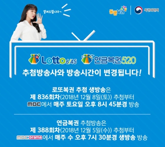 연금복권의 경우 5일 예정된 제388회차부터 현행 SBS플러스에서 MBC드라마로 바뀐다. 매주 수요일 오후 7시 30분 생방송 추첨한다.