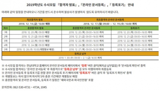 전남대학교 2019 수시모집 합격자 발표..온라인 문서 '등록 필수'