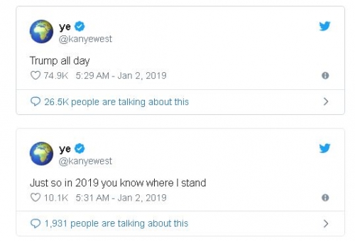 힙합가수 카녜 웨스트가 트럼프에 대한 지지로 2019년을 시작했다.