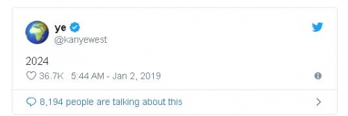 트윗 내용중에는 '2024'라는 숫자도 있다. 자신의 대선 출마 연도를 암시하기도 했다.