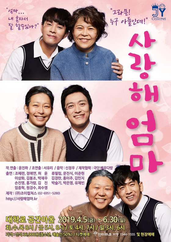 '사랑해 엄마'는 오는 4월 5일부터 6월 30일까지 서울대학로 공간 아울에서 상연된다.