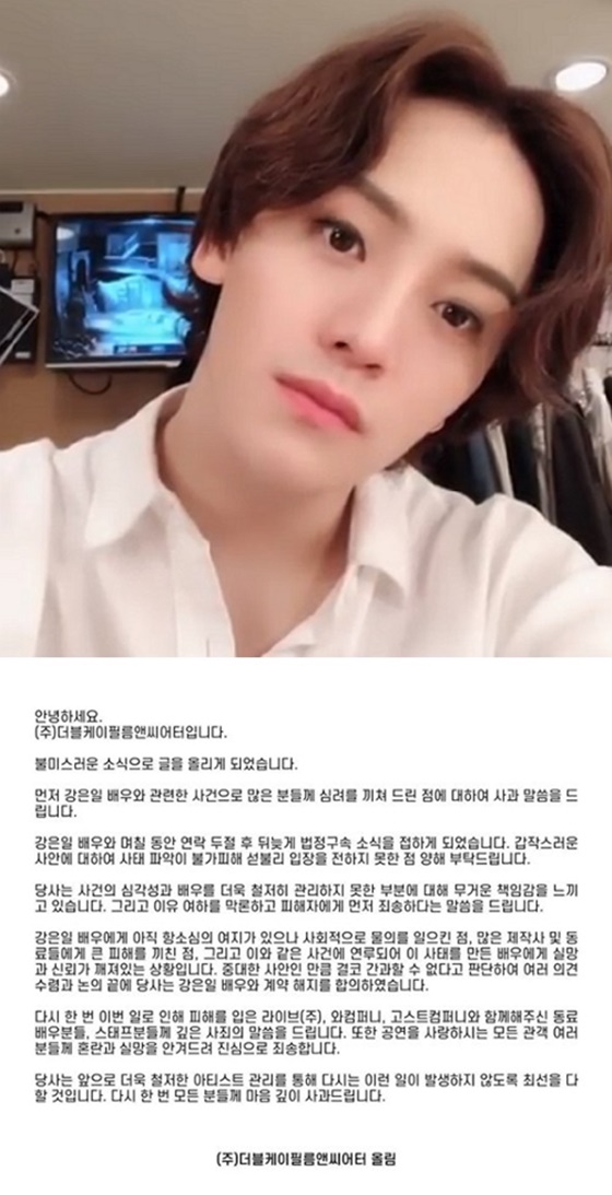 이어 "당사는 사건의 심각성과 배우를 철저히 관리하지 못한 것에 무거운 책임감을 갖고 있으며, 강은일에게 항소심의 여지가 남아있으나, 사회적으로 물의를 일으키고, 많은 제작사, 동료들에게 큰 피해를 끼친 점, 이와 같은 사건에 연루돼 배우에 대한 신뢰를 깨뜨렸기에 계약 해지를 합의했다"고 덧붙였다.
