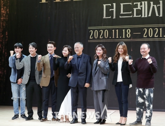 8일 오후 서울시 중구 정동극장에서 연극 '더 드레서' 제작발표회가 열렸다. 이 자리에는 정동극장 김희철 대표이사, 김종헌 공동 제작사 대표, 장유정 연출, 배우 송승환, 안재욱, 오만석, 정재은, 배해선, 송영재, 이주원, 임영우가 참석했다.